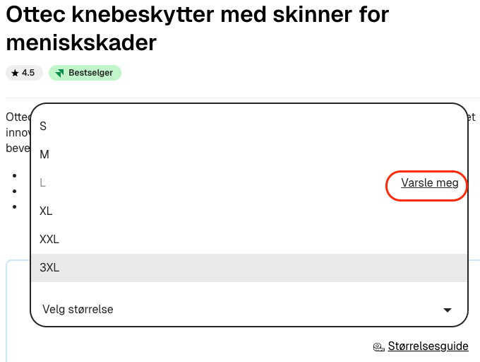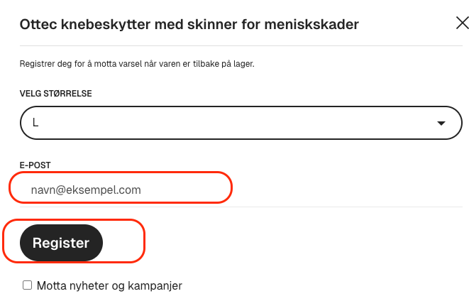 Vi lagerfører majoriteten av produktene våre og bestiller fortløpende nye produkter. Hvis et produkt er utsolgt, kan du klikke på knappen «Varsle meg», skrive inn e-postadressen din og klikke «Register». Når du har registrert e-postadressen din, vil vi sende deg en e-post så snart produktet er på lager igjen.
