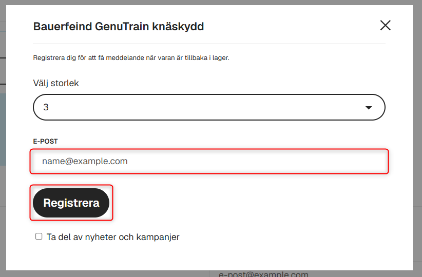 Vi lagerför majoriteten av våra produkter och beställer löpande hem nya produkter. Om en produkt är slut kan du klicka på knappen "Meddela mig", skriv in din mejladress och klicka "Registrera". När du registrerat din mejladress, så kommer vi att skicka ett mejl till dig så fort produkten finns i lager igen.